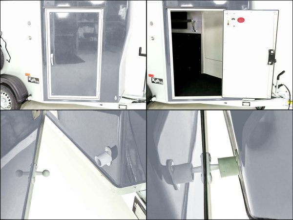 - Tylna klapa aluminiowa, uchylna i odchylana z gumową powłoką