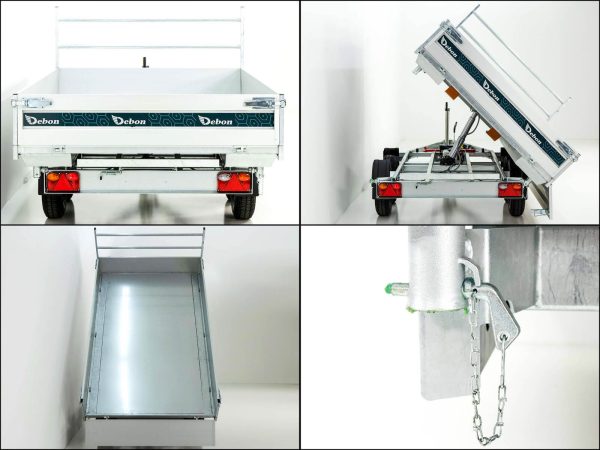 Debon Wywrotka trójstronna 180×306 2,6t | pompa elektryczna | rampy | podpory