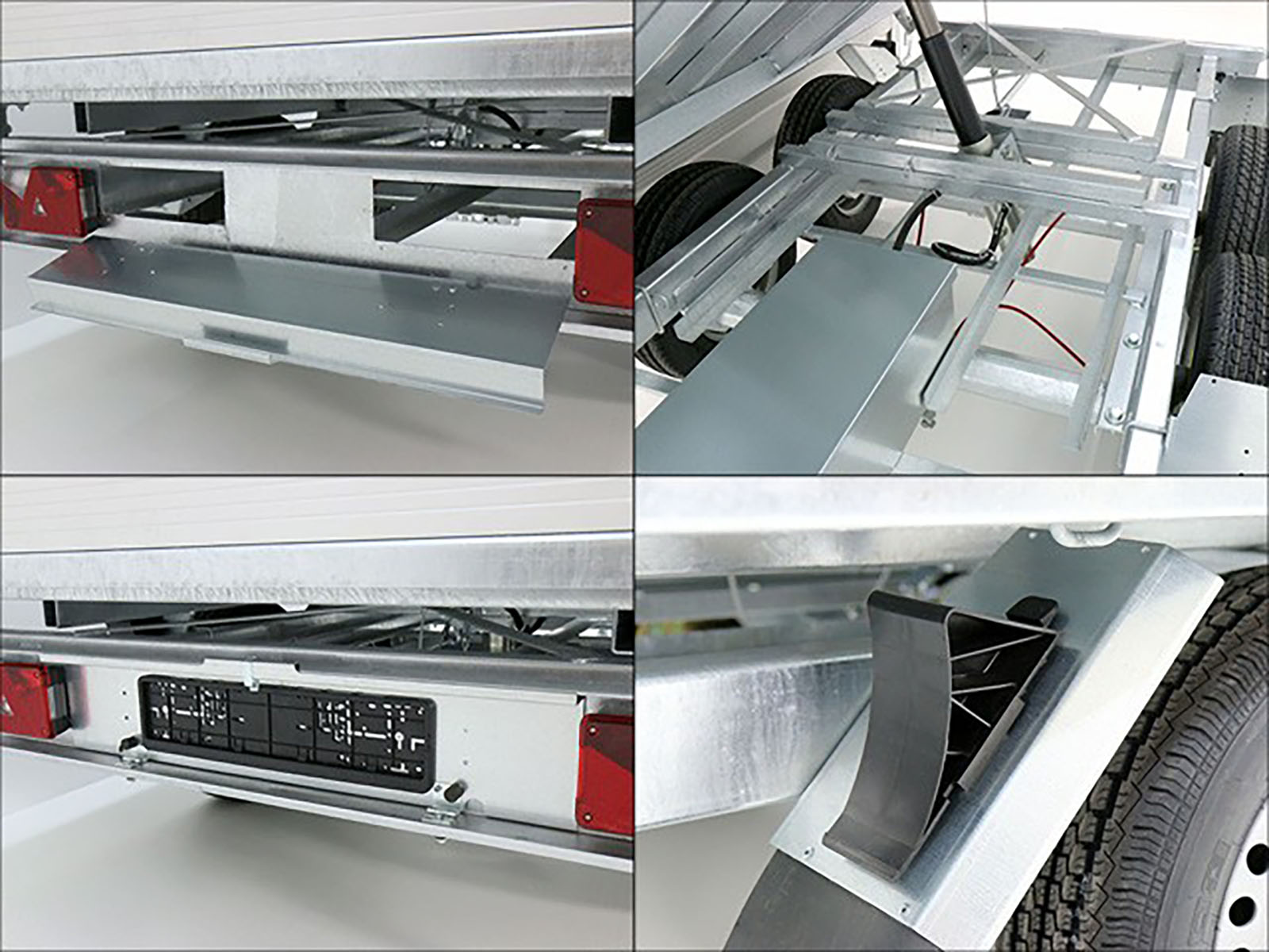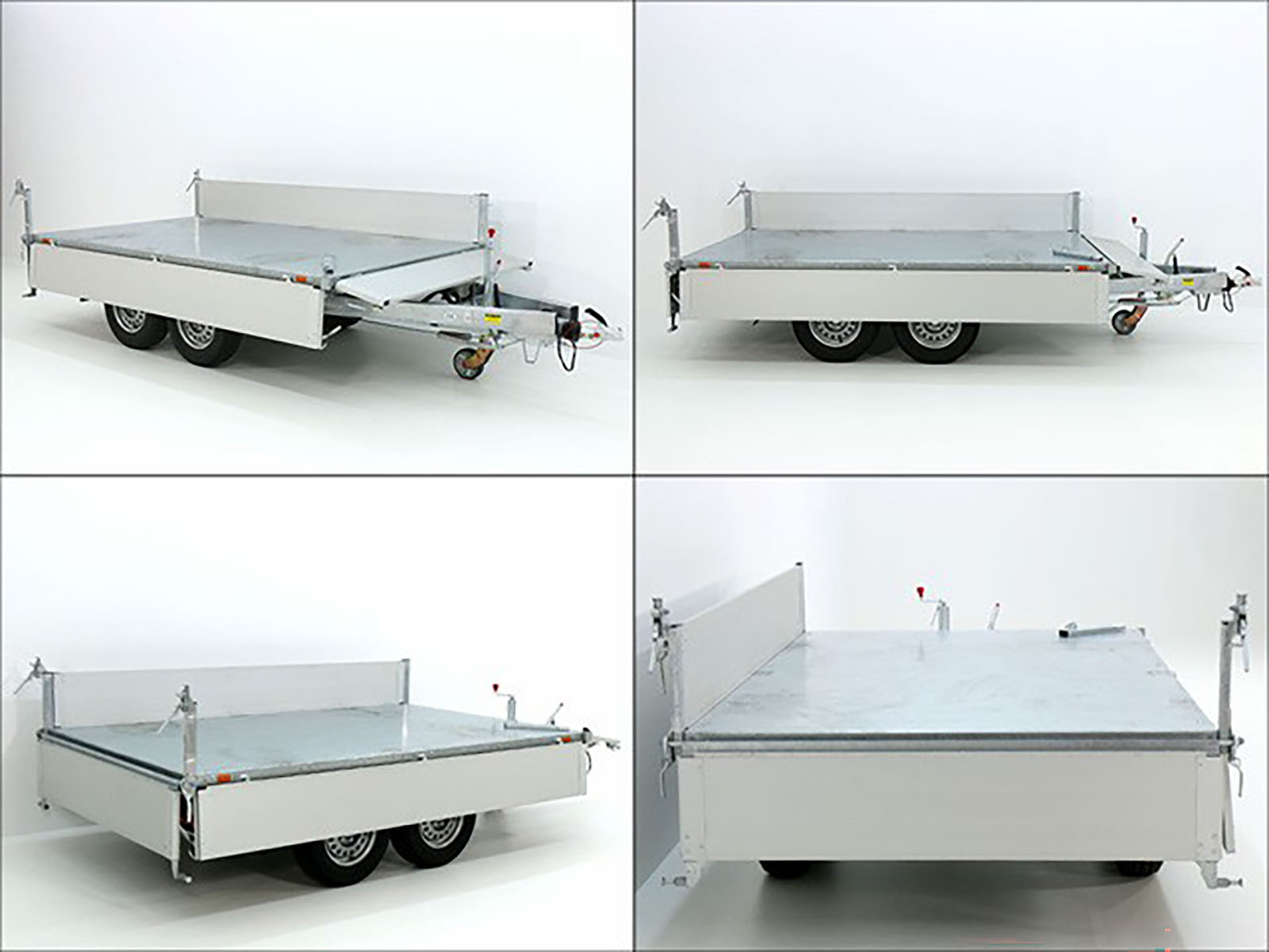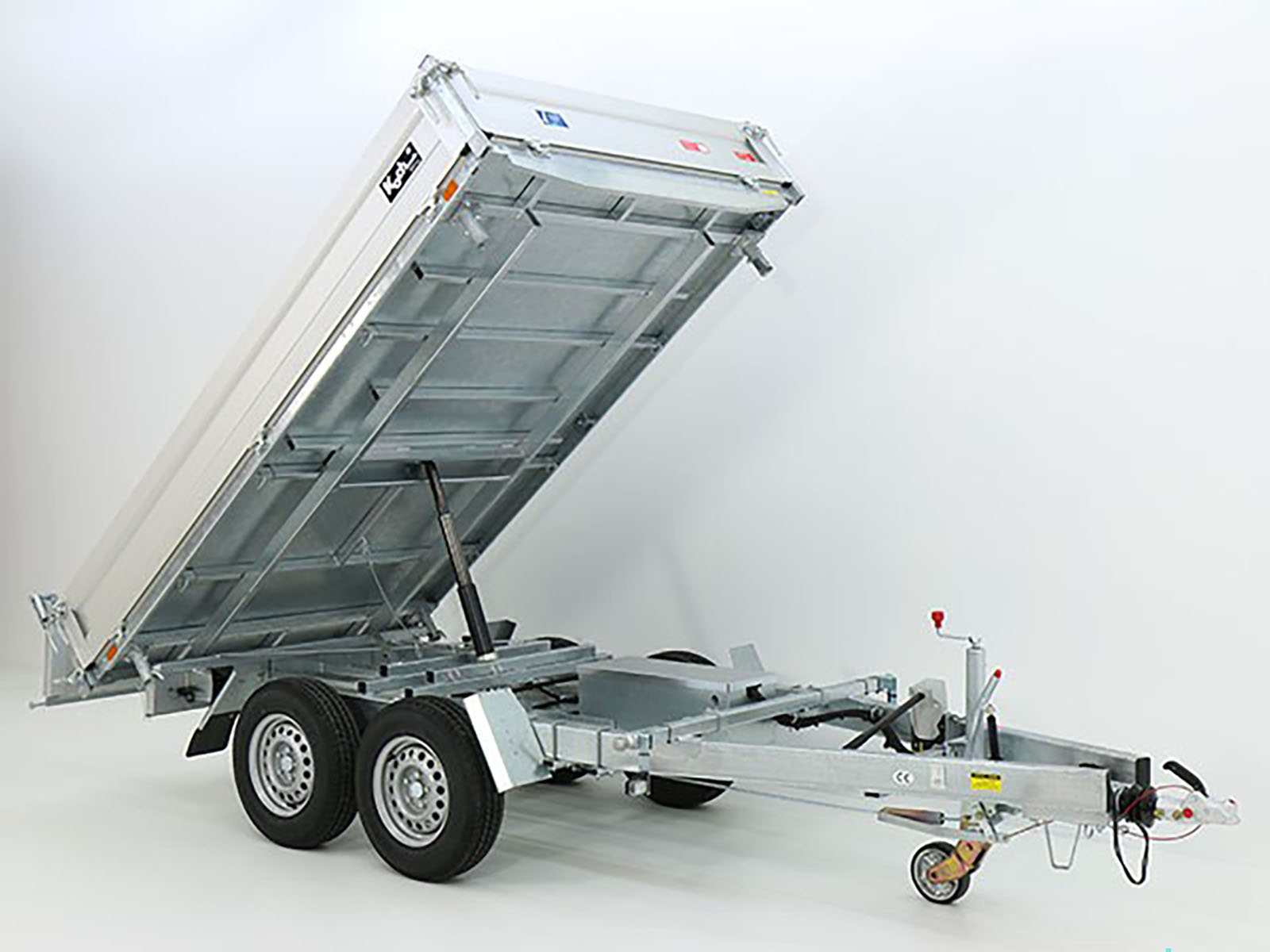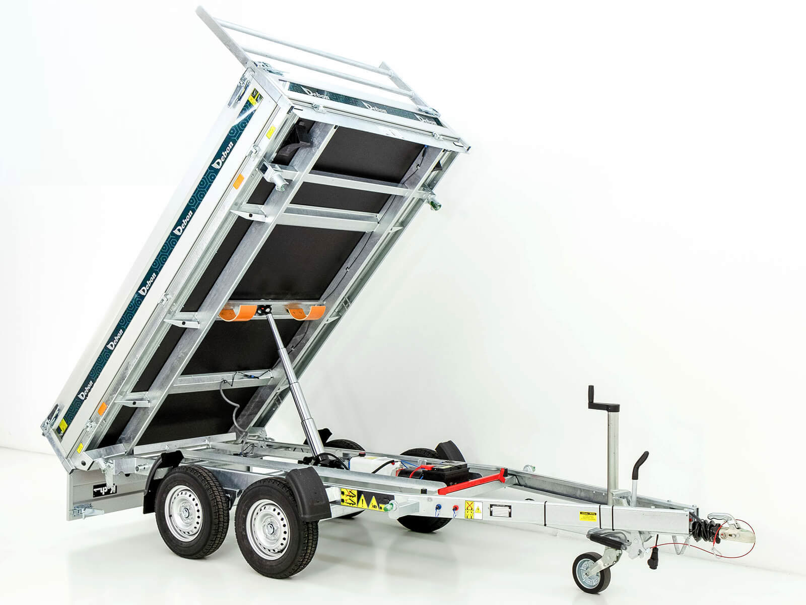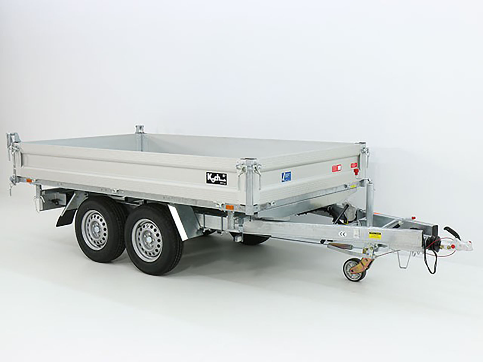 Wywrotka tylna Eduard w tej wersji oferuje doskonałe połączenie pompy hydraulicznej elektrycznej i ręcznej. Dzięki solidnej aluminiowej nadstawce o wysokości 30 cm oraz maksymalnej ładowności 1.454 kg, przyczepa ta idealnie nadaje się do transportu cięższych materiałów.