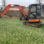 Otrzymaliśmy dobrze utrzymaną Hitachi ZX38-U5, maszyna wyposażona w Engcon EC206 Rotortilt, łyżkę czyszczącą SMP i chwytak do drewna.