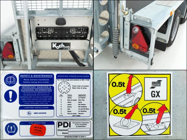 - Podwozie: Resory piórowe, dyszel w kształcie V z zaczepem kulowym, ciężarowe koło podporowe