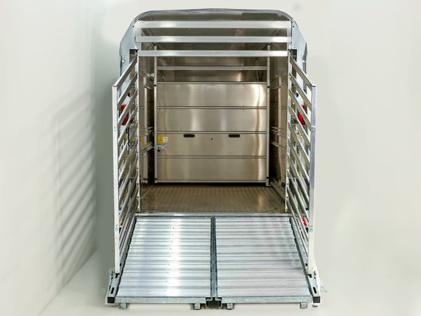 Przyczepa Ifor Williams TA510 14×6 przeznaczona jest do transportu średniej wielkości zwierząt (owce, kozy, młode bydło). Wysokość wewnętrzna 183 cm zapewnia wystarczającą przestrzeń. Kombi-/drzwi-rampa z kratą oraz klapy wentylacyjne gwarantują bezpieczny i wygodny załadunek.