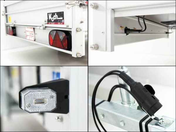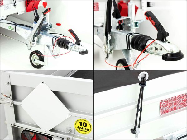 Przyczepa Koch Typ 7.13 w kolorze antracyt, lekka aluminiowa, z plandeką 160 cm. Duża przestrzeń ładunkowa 150 x 300 cm i ładowność ok. 1.020 kg. Konstrukcja alu + stal nierdzewna, 10 lat gwarancji.