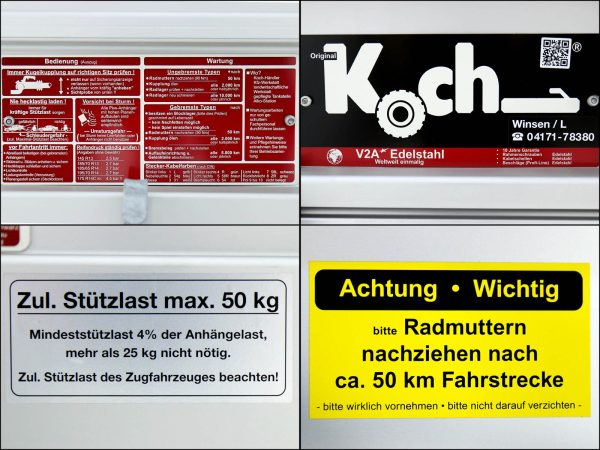 Przyczepa Koch Typ U4 (125 x 250 x 65 cm), lekka alu, DMC 750 kg, ładowność 570 kg, 10 lat gwarancji.