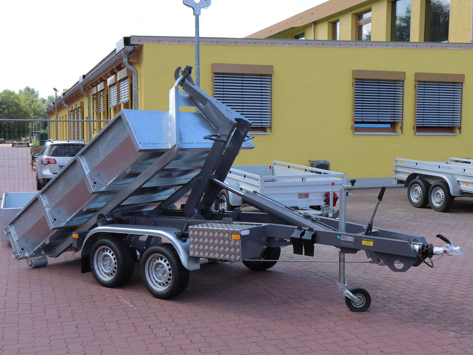 - Wyposażenie dodatkowe: podwójne burty nadstawne 2x 50 cm, 2x 50 cm wsuwane ściany przednie, 2x piloty zdalnego sterowania, skrzynka narzędziowa