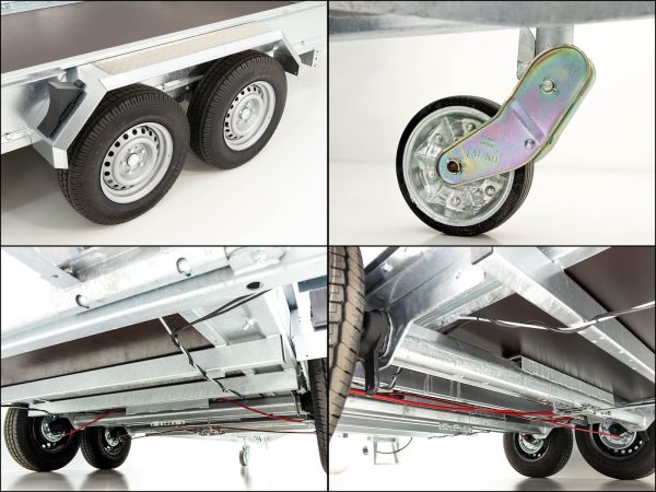 - Podwozie: Oś Alko, dyszel w kształcie V z zaczepem kulowym, automatyczne koło podporowe