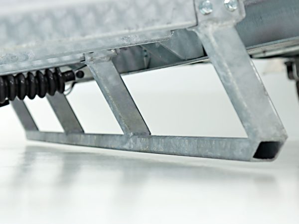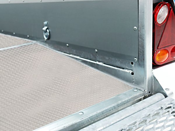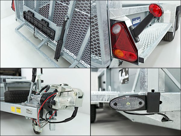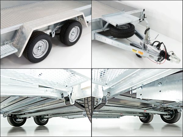 | Szczególne cechy | Rama kratowa, ocynkowana; burty stalowe, ocynkowane; błotniki aluminiowe ryflowane, do chodzenia; stopnie boczne zintegrowane; tył Beavertail (niski kąt najazdu); półka na łyżkę koparki; 10 zewnętrznych punktów mocowania, 8 punktów na burtach; dokumenty pojazdu w komplecie |