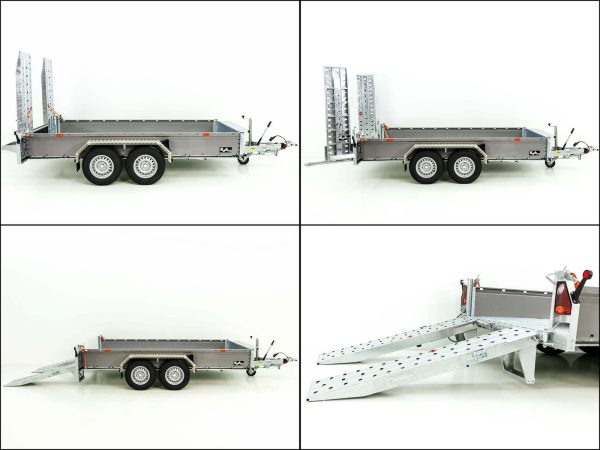 | Szczególne cechy | Rama stalowa ocynkowana ogniowo; uchylne rampy; perforowane rampy 170 cm, przesuwne i uchylne z podparciem; solidny uchwyt na łyżkę koparki z przodu; 10 punktów mocowania na podłodze |