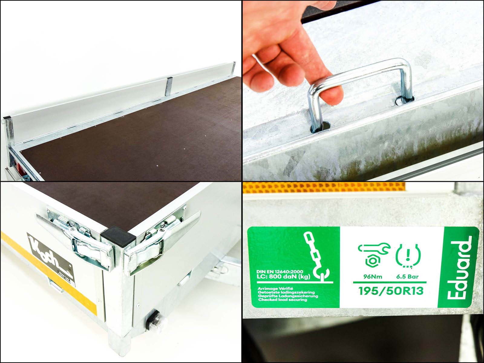 Przyczepa Vezeko D27.4 Hochlader – powiększona wersja z powierzchnią 182 x 417 cm. Masa 563 kg, ładowność 2137 kg, DMC 2700 kg. Podłoga Multiplex, aluminiowe burty 350 mm. Przygotowana pod podpory. Opcja: 100 km/h.